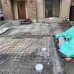 廃材を撤去し、整地して、スロープの造成とコンクリート打設範囲にワイヤーメッシュを敷きました。
