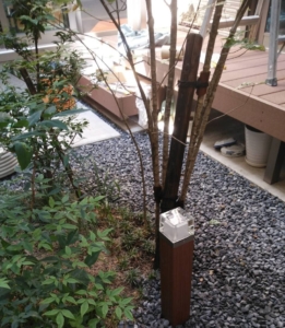 その時、ライト高さを植栽とのバランスを考慮して決めました。