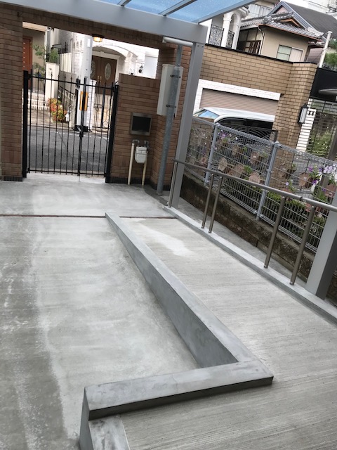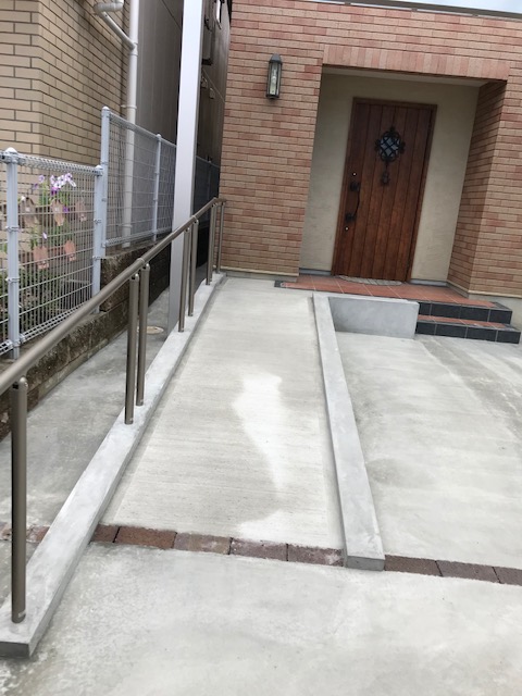 植栽を取り除き、車椅子用のスロープを造作しました。