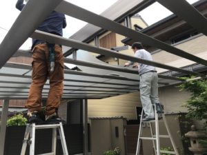 カーポートの骨組みが組みあがりました。