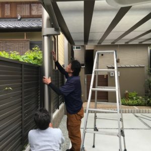 縦樋を取り付け、樋カバーを取り付け完工