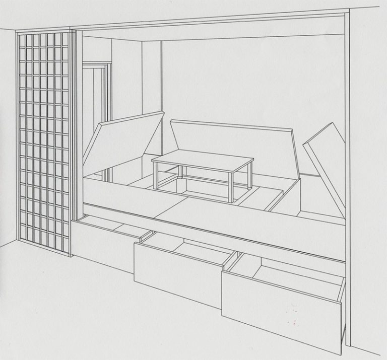 畳を油圧式で簡単に持ち上げ、開閉できる商品をプランしました。